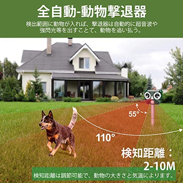 Amazon 害獣撃退器 猫よけ 超音波 強力動物撃退 ソーラー充電 ねこよけグッズ 鳥よけ対策 害獣撃退 コウモリ 鹿除け 犬除け 猿よけ ネズミ よけ ネズミ捕り防水ip66 Usb充電 ソーラー充電器 電池給電 赤外線センサーとled強フラッシュライト 畑 庭園 キャンプ場を有効